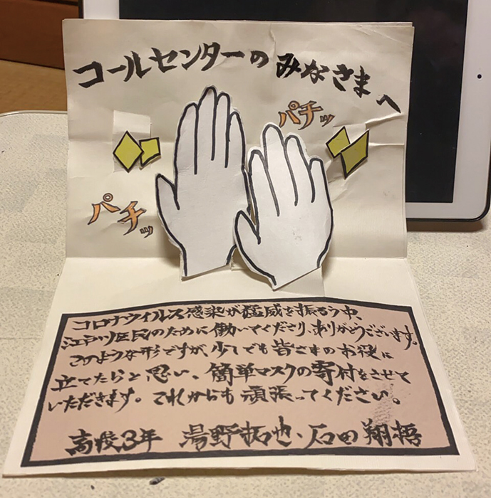 石田: コールセンターに寄付する前に、近所の保育園にも渡しに行きましたね。最初は不思議な目で見られたんですけど、後日保育園のブログにも「ありがとうございました」というメッセージが載っていたのでやって良かったなと思いました。
