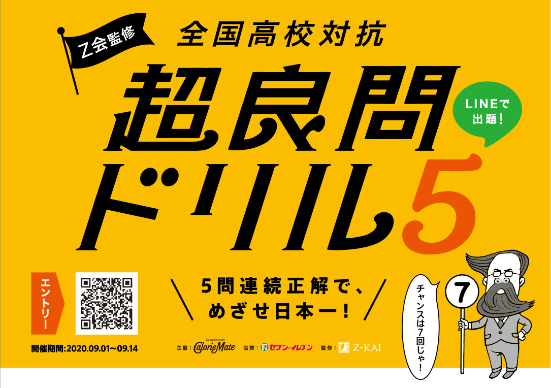 今回の「超良問」は、前回に引き続きLINE公式アカウントで出題! 今すぐ友だち登録をして、クラスメイトはもちろん、部活の仲間、先生、家族を巻き込んで「Z会監修 全国高校対抗 超良問ドリル5」に早速エントリーしよう!