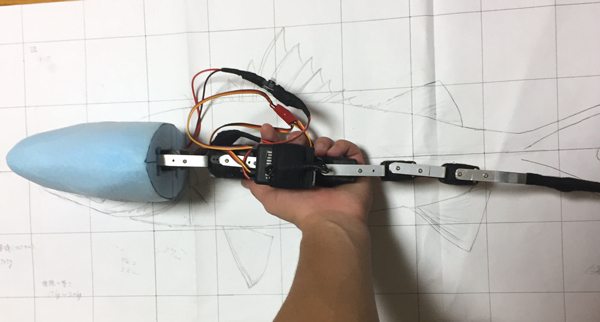 ▲魚の“スズキ”を模したロボットを製作している様子。魚の写真を見たり、実物の魚を購入するなどして、形や動き方を実際のスズキに近づけていきます。