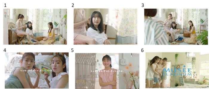 中学生のいとこの家にやってきた“ミュゼ姉妹”。へアレンジをしてあげながら「私にはまだ脱毛早いかな‥?」と悩むいとこにミュゼをオススメします。後日ミュゼに通い、かわいくなったいとこと素肌で触れ合い、ティーンの方も親御さんも安心して通っていただける様子を「ミュゼなら、ずっと、だいじょうぶ。」のコンセプトに沿って表現しています。