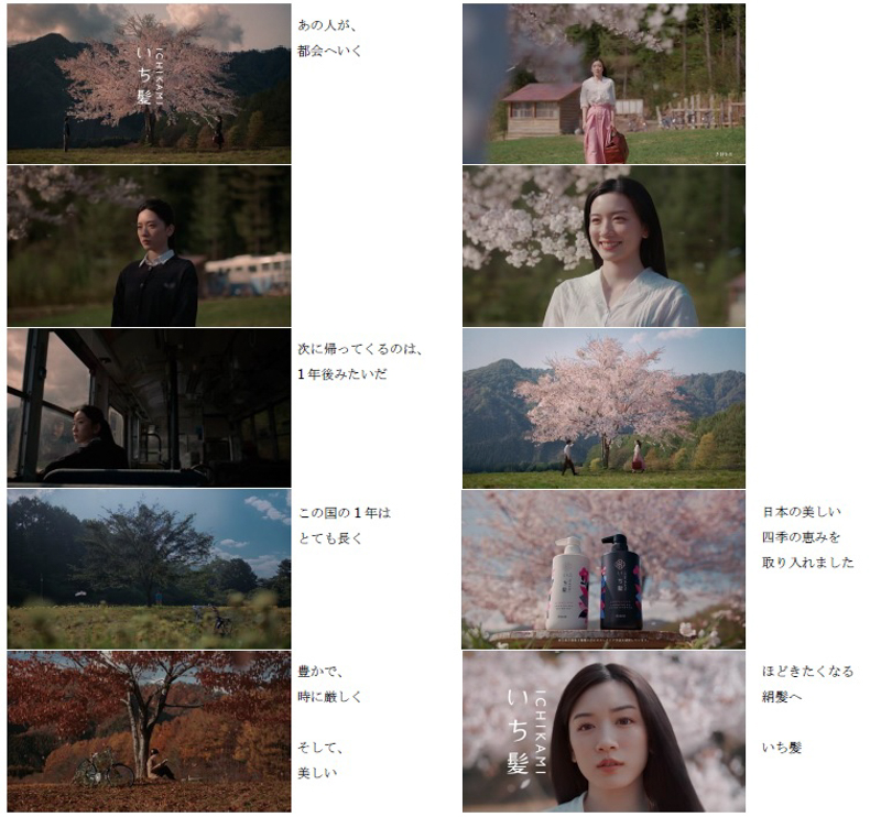 永野芽郁が出演する新CM「日本の四季」篇は、「いち髪」ブランドの象徴でもある“桜”の木を舞台に、美しい日本の四季の中で、別れの切なさと再会の喜びを永野さんの表情や髪の動きで表現。2022年9月9日(金)から全国で放映する。