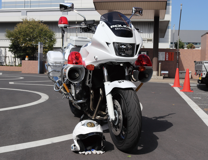 取締りに必要となる、さまざまな装備品を積んだ白バイの重さは約300kg。簡単な整備などは乗務員自身で行い、メンテナンスも徹底され、バイクの安全もしっかりと確保した上で業務にあたります。