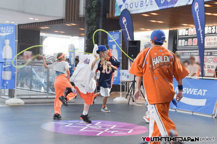 (1)SHOWCASE>>>チームを結成してメンバー全員で音楽に合わせ創作パフォーマンスを行い、ダブルダッチのテクニックと、エンターテイメント性を競う。振り付けはもちろん選曲も各チーム。繰り出される技の数々と、パフォーマンス内に込められているメンバーの個性を楽しんでほしい。