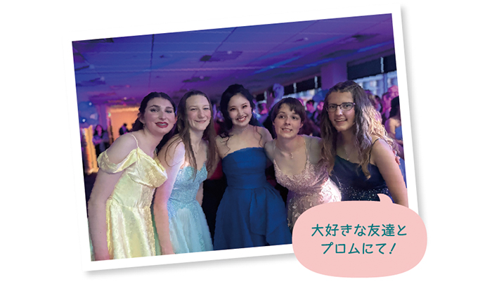 “ホームカミング”や“プロム”といったダンスパーティーに出席したことと、合唱コンサートに出演したことです。ダンスパーティーでは、友達と一緒に衣装を選んだり、友達のお家で準備をしました。特にプロムに参加した時は、友達とドレスショッピングに行ったのが楽しかったです。プロムは5月に行われるのですが、ドレスは早ければ早いほど素敵なものが多くて。友達と「絶対に可愛いドレスを手に入れよう!」と、手頃な価格で可愛いドレスを売っているお店に3月から行って探していました(笑)。合唱コンサートでは、みんなでお揃いの色の衣装を着て歌いました。アメリカの合唱は綺麗に声を揃えて歌うよりも、一人ひとりのノリを大切にしている印象で、自分の個性を大事にしていました。会場にいる観客との一体感を楽しめるようなアップテンポな曲が多く、とても楽しかったです。