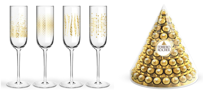 当選された方には、フェレロ ロシェ96粒入りピラミッド、またはイタリアBormioli Luigi社製「フェレロ ロシェ」シャンパングラス(4個セット)をプレゼントいたします。