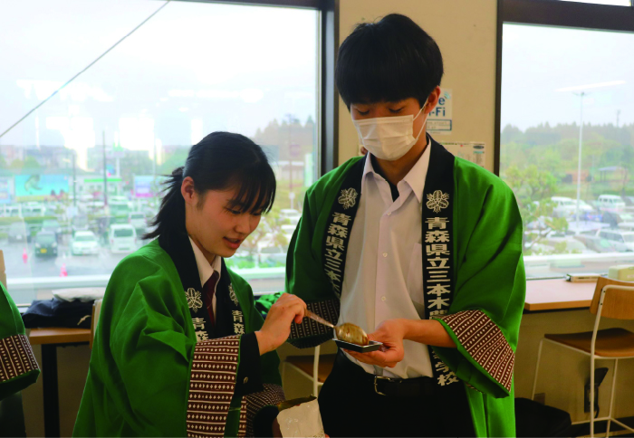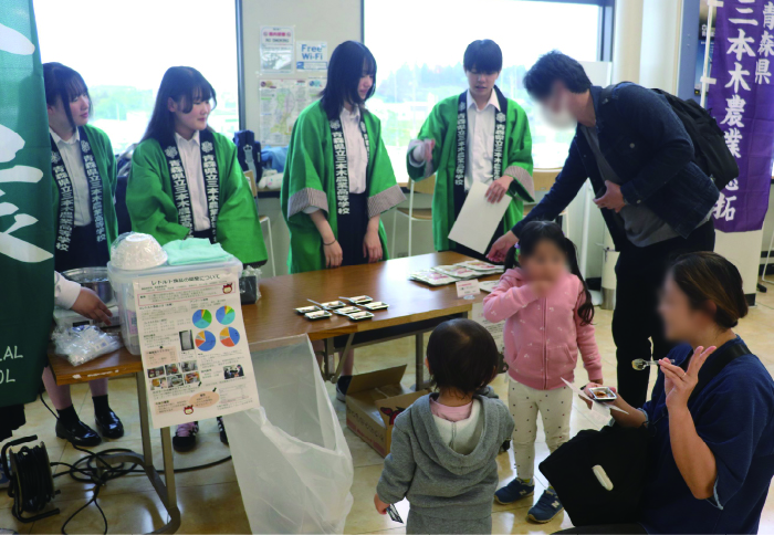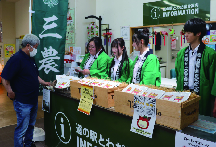 商品完成後、今年の5月には同県三沢市にある三沢空港、6月には十和田市にある道の駅とわだ「とわだぴあ」にて販売会を実施! 三沢空港での販売会では、準備していた100食近くのレトルトカレーが販売できたそうです。北野大地くん(3年)は「小さい子どもが試食してくれた時に、美味しいと言いながら飛び跳ねて喜んでくれたことが印象に残っている。小さい子にも美味しく食べてもらえたのが目に見えた瞬間だったので嬉しかった」と、販売会での出来事を振り返りました。
