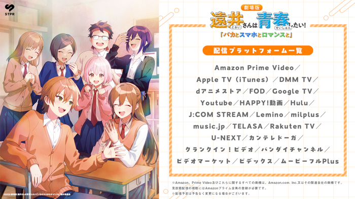 株式会社STPRは、当社所属のジェル(すとぷり)が原作・製作総指揮を務めた劇場版『遠井さんは青春したい!「バカとスマホとロマンスと」』について、2025年12月11日(木)より各動画配信プラットフォームでレンタル配信・デジタルセル配信が開始する。