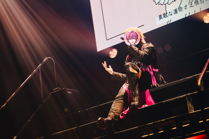 ここからは「歌ってみた」で、夢・恋・影を感じさせていくターンに突入。まずは、毒気たっぷりに「ラヴィ」をパフォーマンスし、一瞬にして“Dream´n Rouge”の世界へ引きずりこむ。吐息たっぷりな歌声はとてつもなく妖艶で、身も心も溶けてしまいそうになるほど。とはいえ、甘やかすだけとはいかないのが、ないこの流儀。「もっと!」とコールを焚きつけ、さらなる高みへと観客の手を引いていく。「ロミオとシンデレラ」では憂いを帯びた瞳で儚さを演出し、「世界は恋に落ちている」では愛嬌たっぷりに想いを表現。セリフのパートは「ばーか。いつも一緒にいてくれて、ありがとうな。恥ずかしいから一言だけ、だいすしです」とアレンジを加え、ないこ自身の気持ちを一直線に届けた。