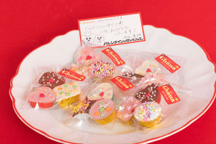 そして全ての撮影が終了後、自身で作ったガーナチョコスイーツを撮影スタッフの方々へプレゼント。「心を込めました!見てください、(カードに)ツクチャオも描いてみました(笑)撮影有難うございました」とお礼を伝えた浜辺だった。